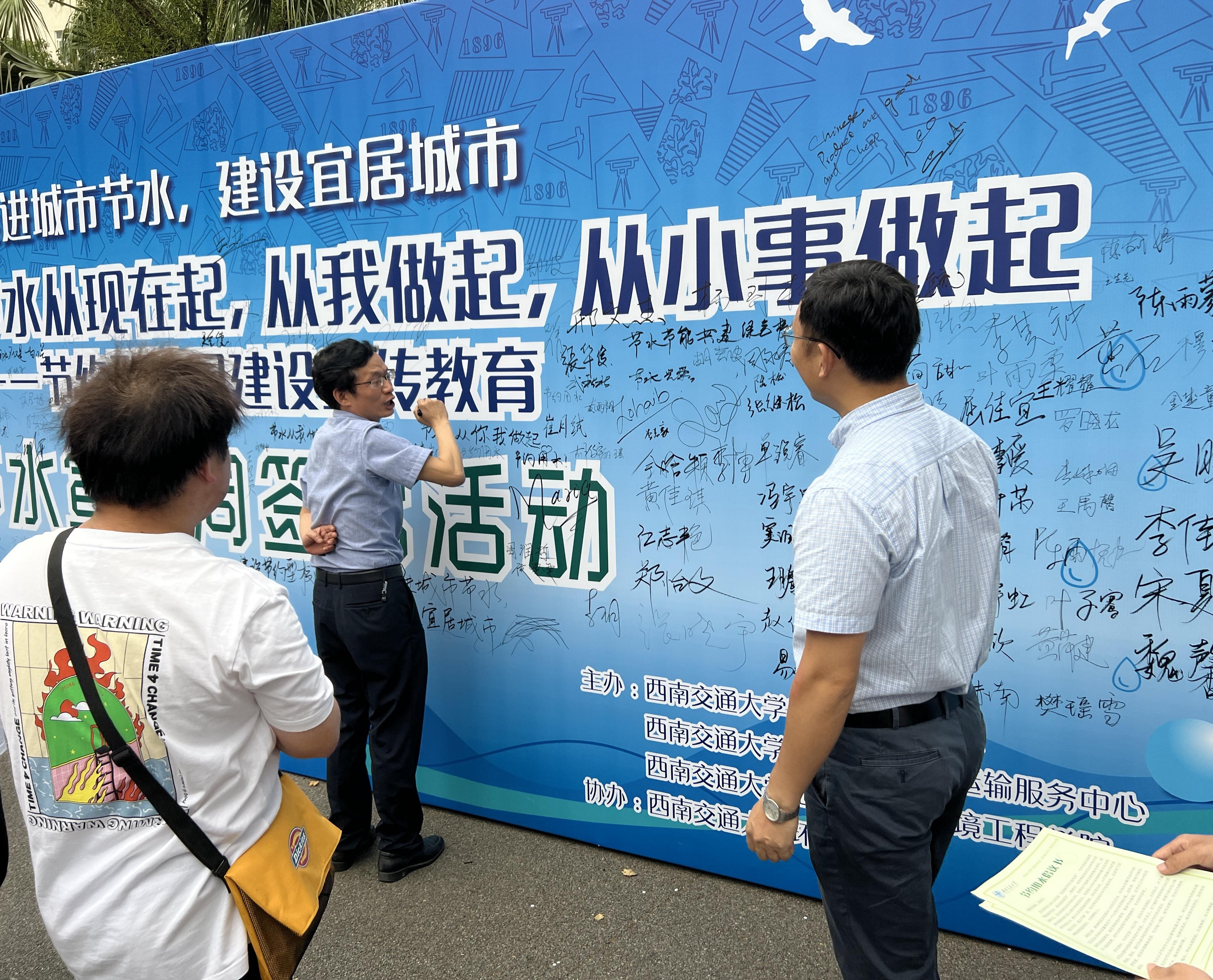 活动当天,环境协会、环保志愿者协会同学与公司2023年“菁英计划”青马工程培训班部分学员到场,协助维修、水电及运输服务中心老师发放节水宣传册,向过路师生主动宣传节水技巧,并号召大家在签名墙上留下自己的节水承诺。活动现场设置维修报修登记处和节水建议征集处,为师生开设问题解决渠道,鼓励大家共同为公司节水出谋划策,并陈列常见的节水器具和节水产品,供师生参观学习。公司党委副书记郑波老师指导并全程参与了本次活动,在签字墙下为师生宣讲节水知识,呼吁大家节水从现在做起、从小事做起、从自己做起。