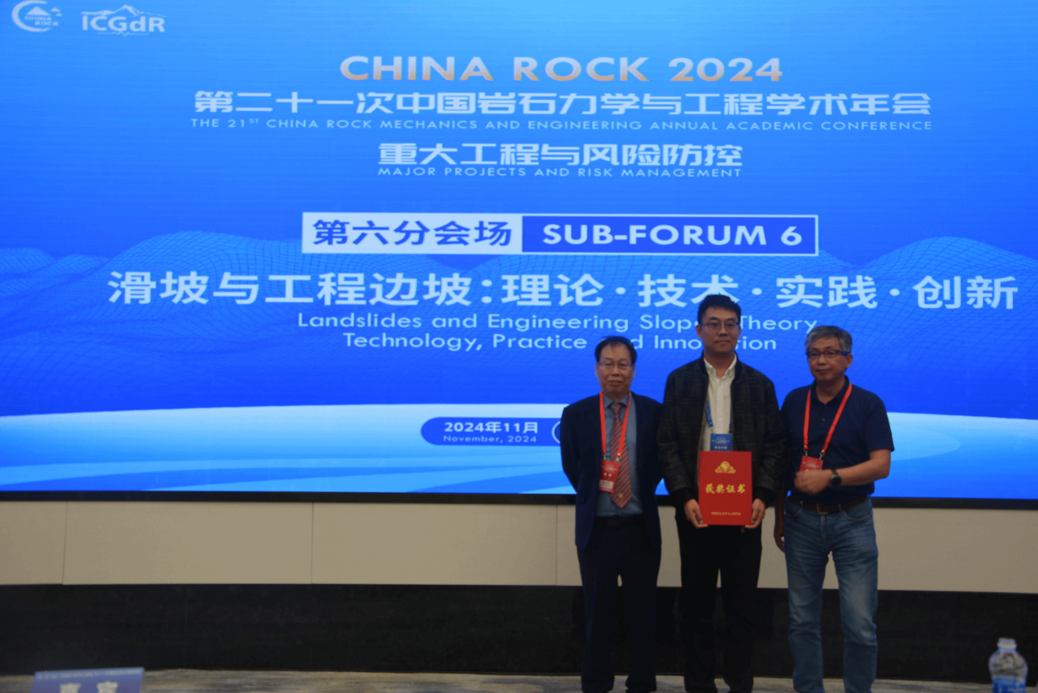 2024111日,由中国岩石力学与工程学会和国际地质灾害与减灾协会共同主办了CHINA ROCK 2024第二十一次中国岩石力学与工程学术年会,会议主题为:重大工程与风险防控。本次年会在成都设置主会场,全国各地设置15个中心城市会场,全国高校设置了277个卫星会场,近12万余名国内外科技工作者参会交流。赵晓彦副经理带领十余名地质系师生参加了成都中心主会场现场会议,胡卸文教授和程谦恭教授应邀参加了粤港澳大湾区-珠江西江经济带中心会场会议。