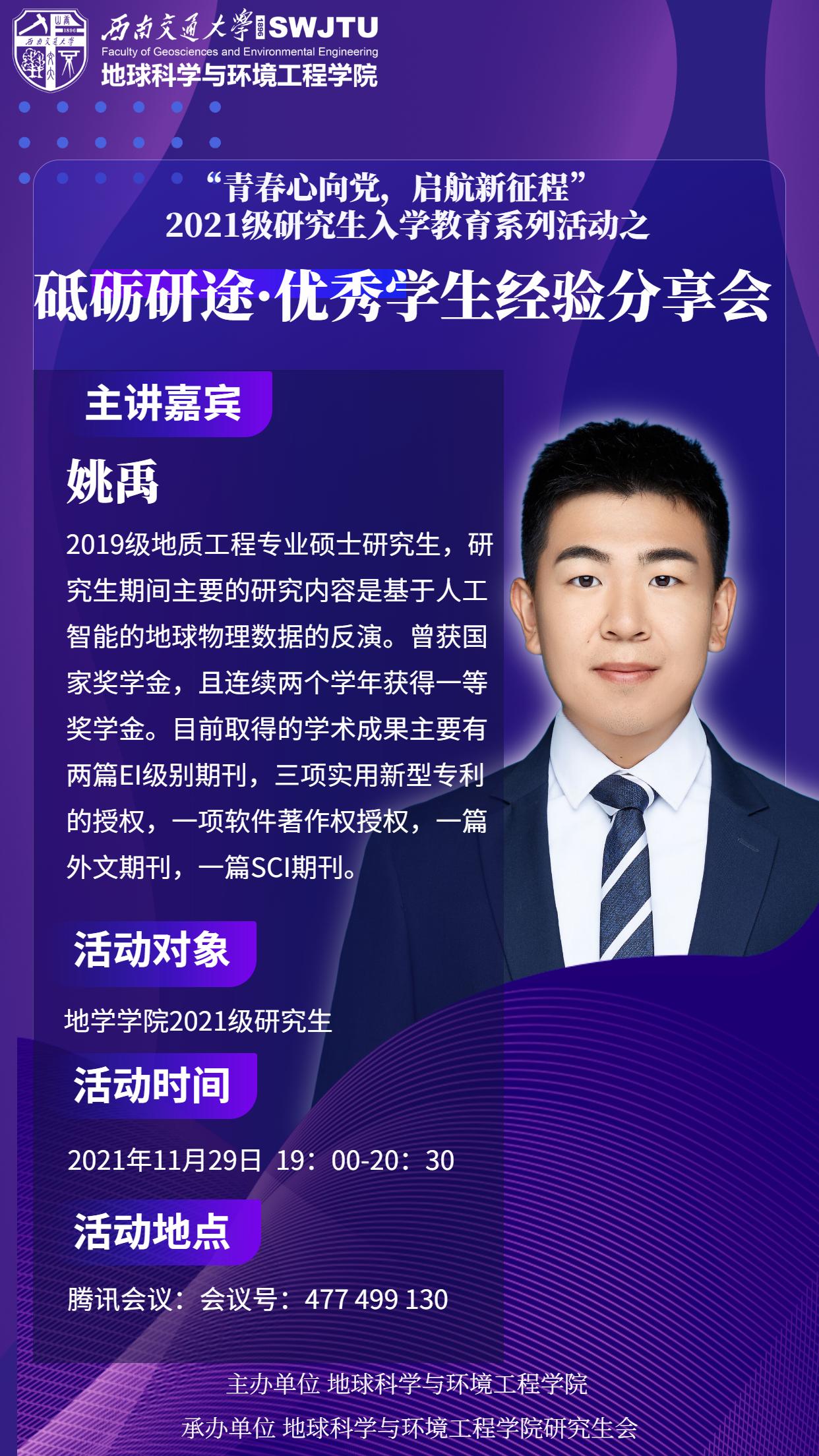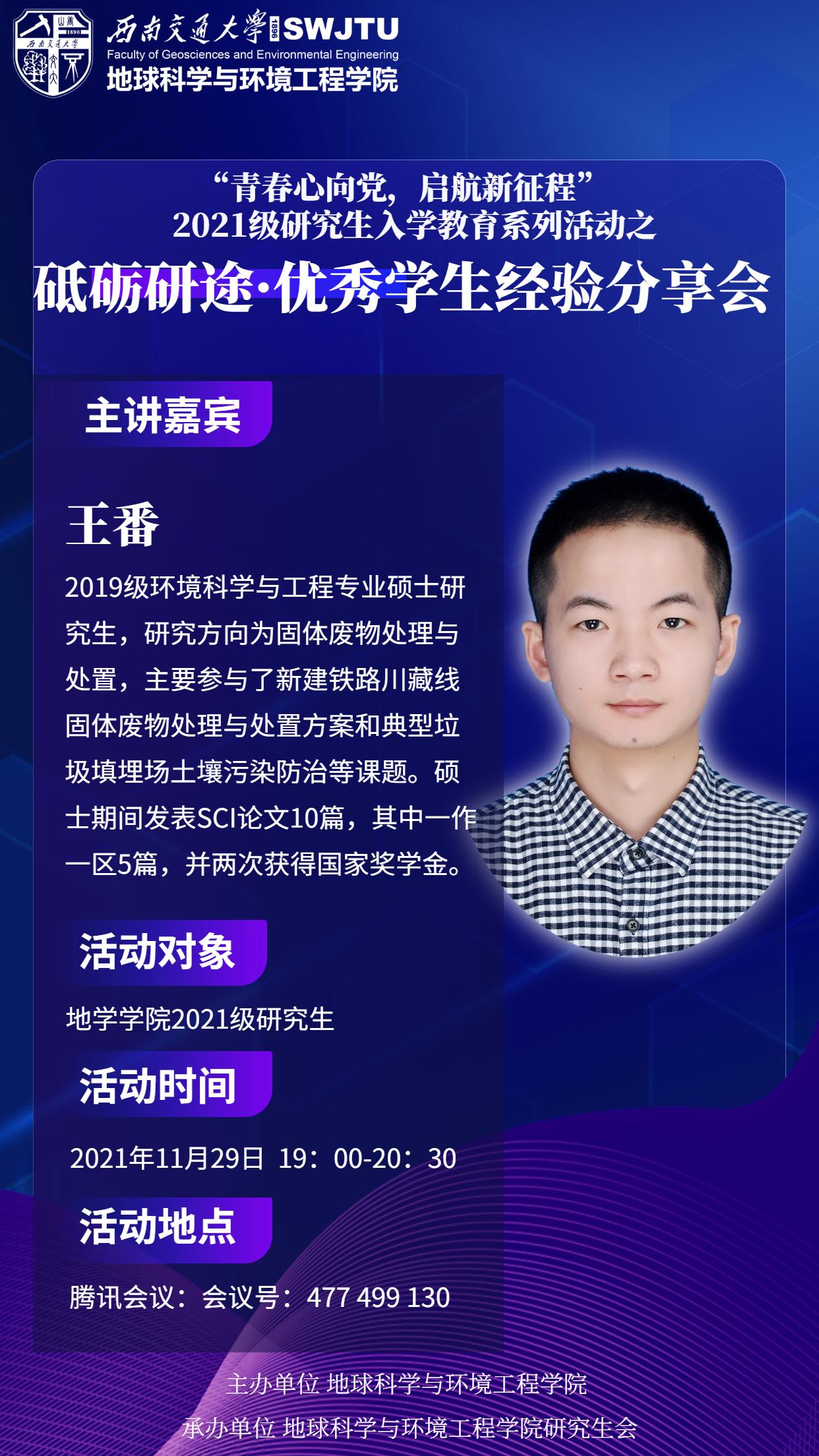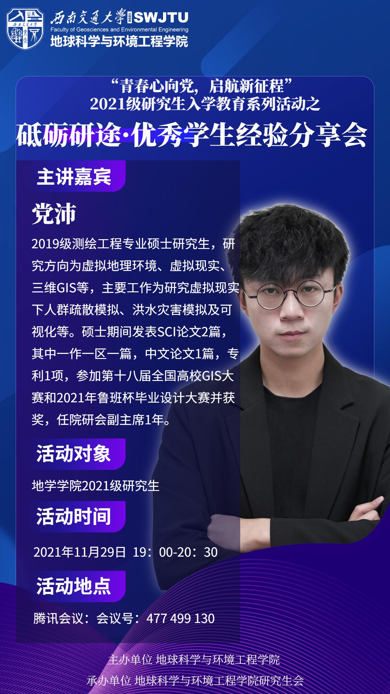 【砥砺研途】“青春心向党,启航新征程”2021级研究生入学教育之优秀员工经验分享会活动预告