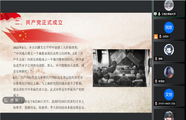 2021年8月1日晚上八点,BEATS本18级第三党支部通过腾讯会议线上开展了暑期党史自学读书会,支部内每一位党员在暑假期间都积极学习党史,通过这次机会每位党员挑选自己印象最深刻的一段党史,借助PPT展示,向支部内其他成员讲述党史故事,并分享自己的个人心得体会。本次活动由本18级第三党支部组织委员刘民欢同志主持,本18级第三党支部全体党员参加。