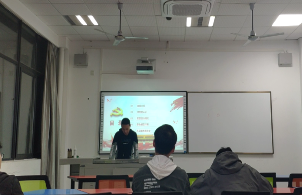 最后,候选人王越进行了自我陈述及PPT展示,他主要从对党的认识及自己的思想政治情况进行了介绍。党的认识方面,他主要介绍了中国共产党的光辉历史及党员的八项权力等;思想政治方面,包括积极参与党史学习教育,青年大学习的参与率达90%,积极参加支部活动等。