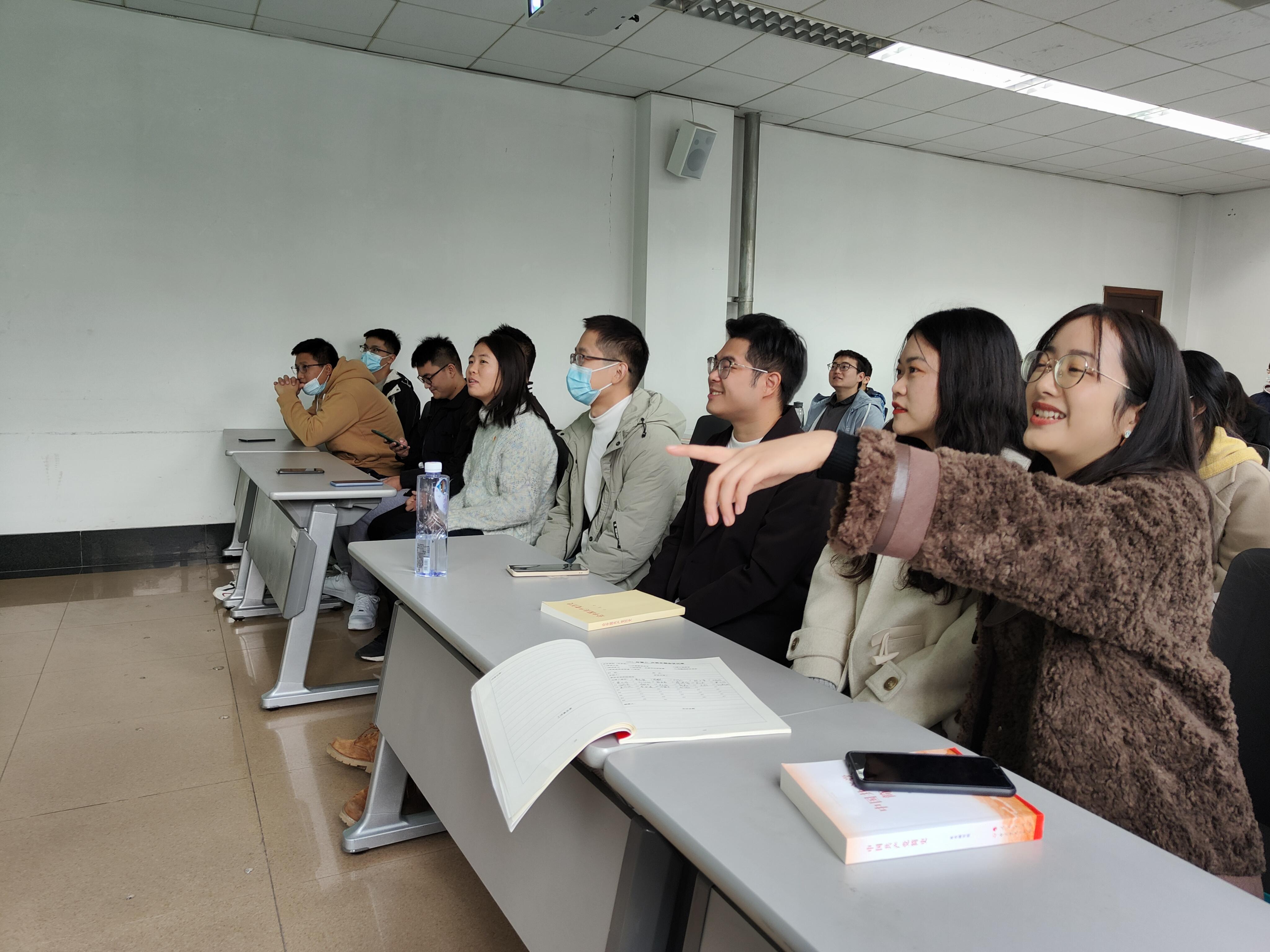 接着进入此次活动的强国知识竞答环节答题,由刘杰同志主持,各支部派出五名党员代表进行题目竞答,题目来源多为强国知识与党史学习竞答题。在答题过程中各支部代表们表现积极,抢答激烈,两支部的答题代表们都热情高涨,本着为支部争光,展开了激烈的抢答争夺,最终以地质党支部的小组以略微优势获胜,最后再由环境支部委员张馨予同志分享自己的读书笔记。通过这样带有竞技体验的答题活动,不仅给此次党日活动带来趣味性,同时也让两支部的党员同志们在答题过程中进行党史学习,提高自身党性修养。