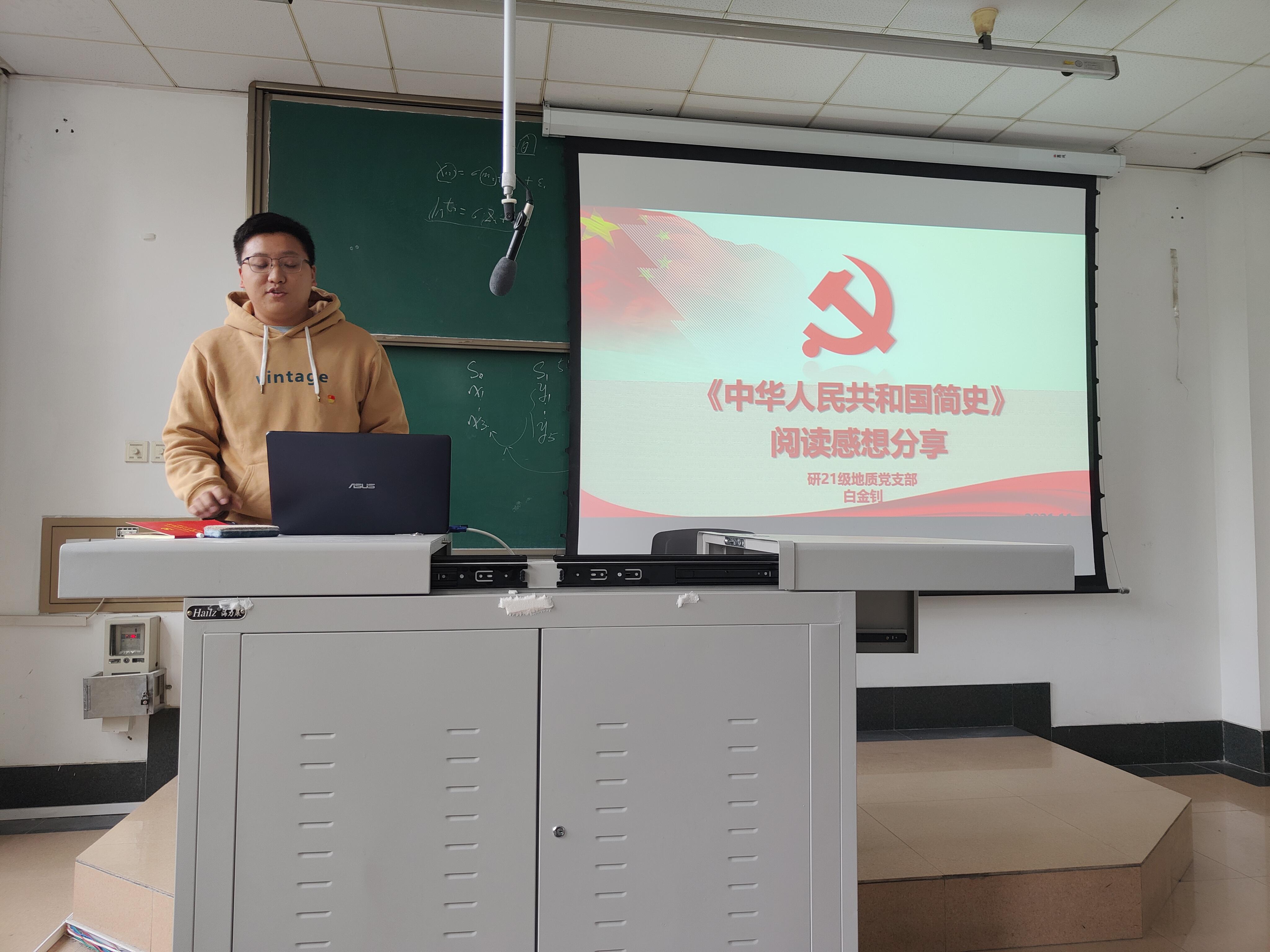 为学习贯彻习近平总书记在庆祝中国共产党成立100周年大会上的重要讲话精神,根据公司党史学习教育相关工作部署,研21级地质党支部和研21级环境第一党支部联合开展此次“学百年党史,忆初心使命”主题党日活动,同时为了持续深入开展党史学习教育,夯实支部党员读书学习成果,一同开展了关于党史原著读书活动的学习分享会。本次会议11251400在九里校区J4222教室举行,由支部书记刘杰同志和王婷同志主持召开,此次的活动形式包含了党史知识竞答和党员读书分享会。