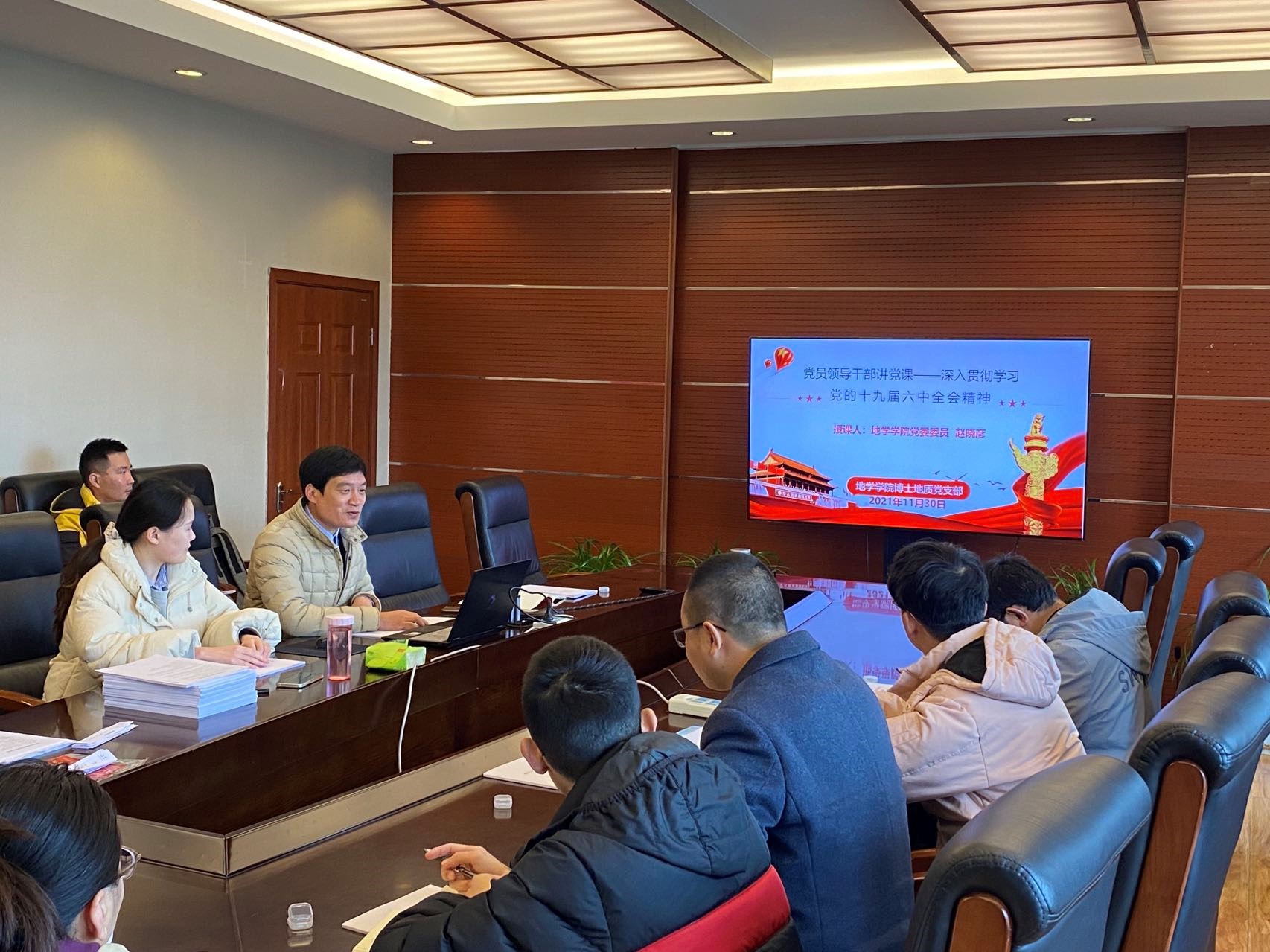 2021年11月30日10:00,博士地质党支部于X4531邀请了公司党委委员赵晓彦教授为员工党员讲授“深入贯彻学习党的十九届六中全会精神”专题党课。本次党课活动由党支部书记张雪凝同志主持,支部成员参加此次活动。