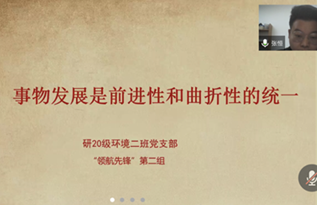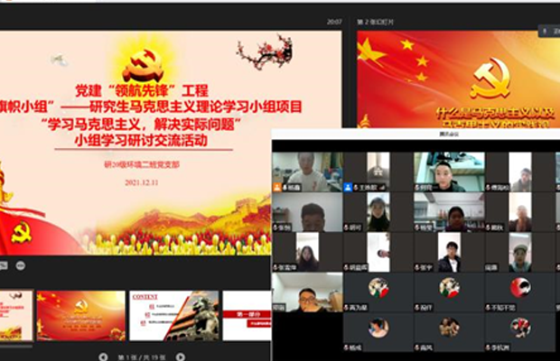 为持续推动党史学习教育向纵深发展,引导支部党员做到学史明理、学史增信、学史崇德、学史力行,从党的百年伟大奋斗历程中汲取智慧和力量。BEATS研20级环境二班党支部于2021年12月11日在线上开展了党建“领航先锋”活动之——“旗帜小组”学习成果研讨交流活动,分享近期阅读马克思主义原著等书籍的学习心得。此次活动由党支部书记杨鑫主持,研20级环境二班党支部全体成员参与。