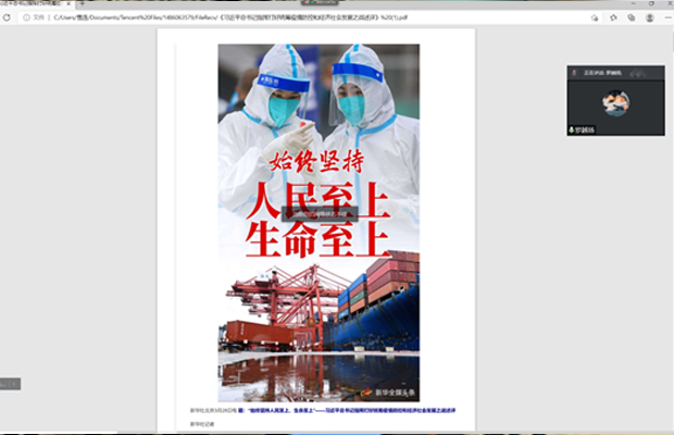 为了使支部党员正确认识当前疫情防控形势,服从公司疫情防控工作安排,2022年4月14日晚,研20级环境三班党支部通过腾讯会议组织学习了《习近平总书记指挥打好统筹疫情防控和经济社会发展之战述评》。