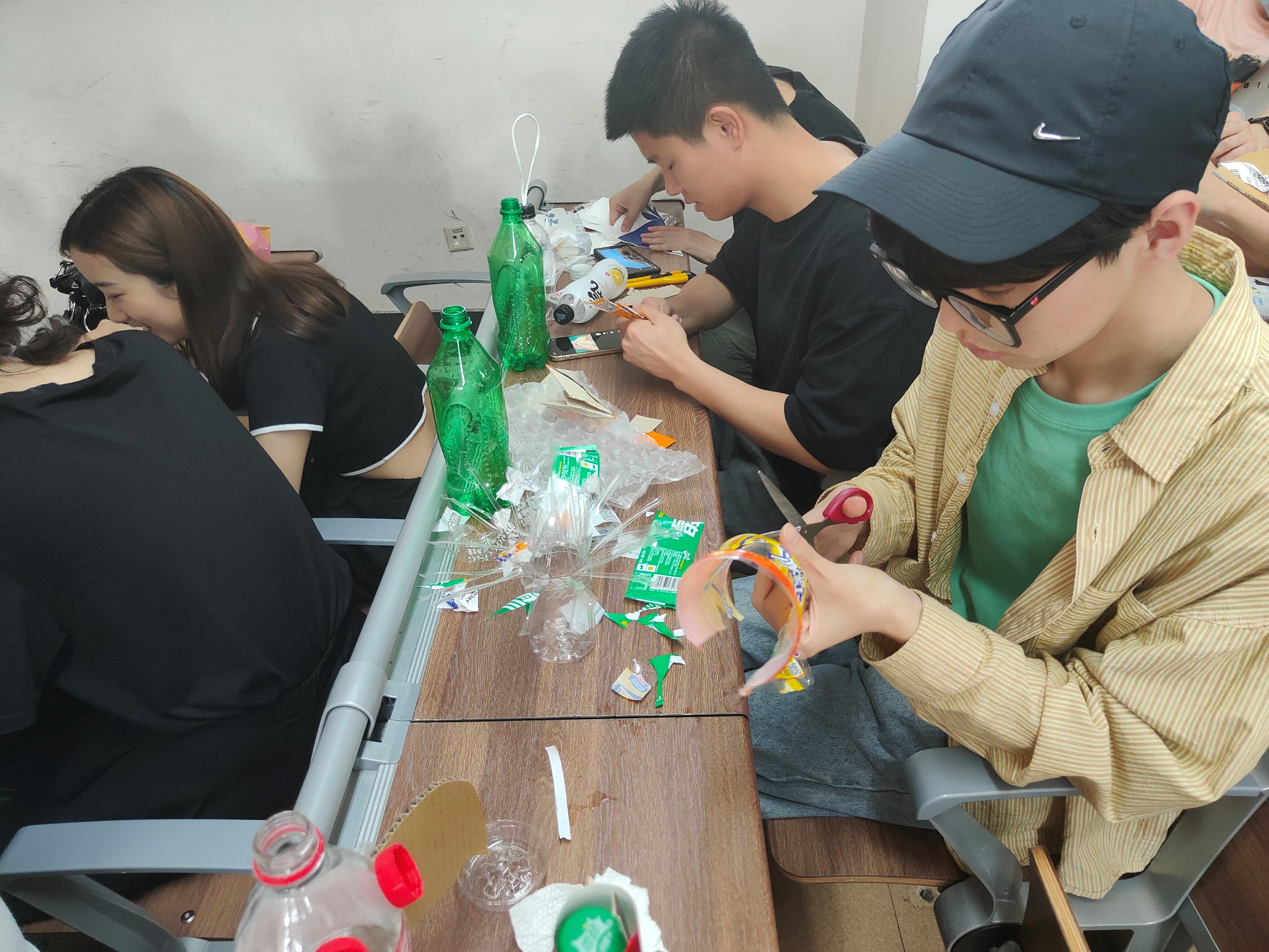 在重“塑”实验室环节中,同学们利用收集的塑料制品等材料进行环保手工制作,大家参与热情高涨,通过奇思妙想,制作了环保手篮、环保手账、塑料哑铃、手工塑料花、塑料菠萝、塑料花瓶等手工艺品16件;通过环保手工制作,体现了同学们对于环保行业的热爱,也展现了同学们天马行空的想象力。