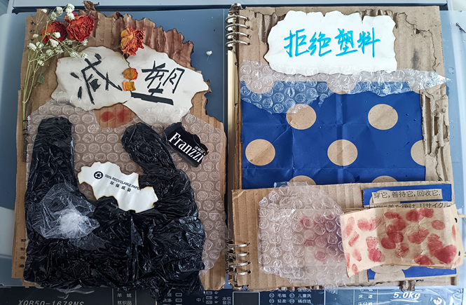 本次活动设置了塑料回收站、重“塑”实验室、环保“袋”言人、拒绝塑料情四个环节。第一个环节塑料回收站,参与的同学们通过清理校园内外街道的塑料垃圾、收集平时生活中的塑料废物兑换环保手工袋,强化了同学们的减“塑”意识,倡导同学们在生活中拒绝使用一次性塑料袋,多用环保手袋;
