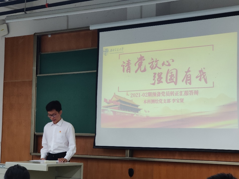 2022年6月16日晚19:00,BEATSBEATS本科测绘党支部于犀浦校区X4154教室召开预备党员转正大会,讨论关于钱琛、刘珈雯、陈月浩、葛紫腾、任炳屹、李宝贤、昌凡浩共七名预备党员的转正问题。本次会议由党支部书记王文涛主持,本科测绘党支部全体党员、预备党员参与此次会议。