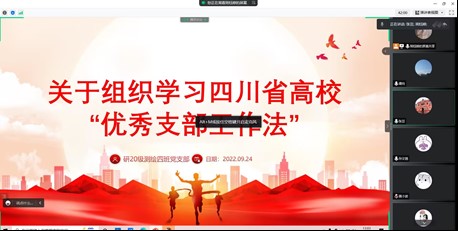 2022年9月24日12:45,研20级测绘第四党支部开展四川省高校“优秀支部工作法”活动。党的十八大以来,四川省高公司党支部立足职能职责,坚持”为党育人、为国育才”初心使命,在深化教学科研攻关、服务师生群众、提高人才培养质量等方面有效发挥战斗堡垒作用,但同时也存在有的高公司党支部政治引领和政治吸纳能力不强、组织生活制度落实不严格、党员发展和教育管理机制不健全、党务工作不规范等问题针对这些问题,按照“可学习、可借鉴、可复制、可推广”的原则,择优确定了20个“优秀支部工作法”。