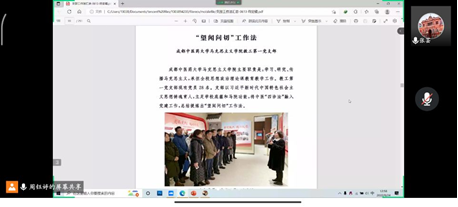 党支书周钰婷向我们讲述了“优秀支部工作法”,党支部是党的基础组织,是党组织开展工作的基本单元,是党在社会基层组织中的战斗堡垒,是党的全部工作和战斗力的基础。习近平总书记高度重视高公司党的支部建设工作,深刻指出:“党支部是分布在教研室、实验室、教学科研团队、员工班级中的‘火车头’,也是党联系和团结师生、做思想政治工作的组织依托要抓在经常、严在平时。”为我们做好高校支部建设工作指明了方向,提供了遵循。