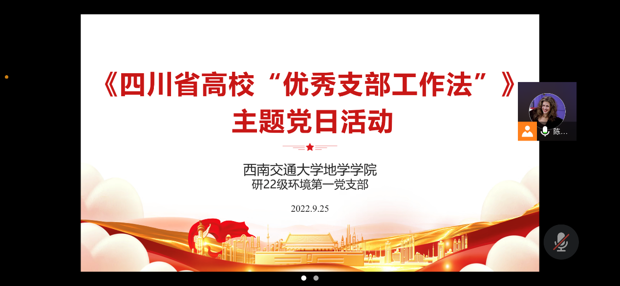 研22级环境第一党支部于2022年9月25日20时通过腾讯会议召开学习《四川省高校“优秀支部工作法”》主题党日活动。本次会议由党支部书记陈春荧主持,党支部全体党员参加。