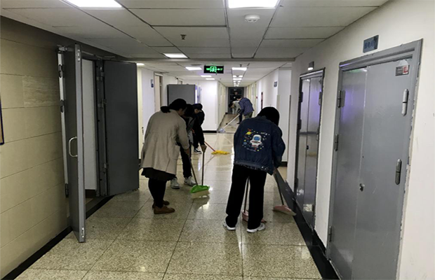 在党支部书记杨世恩的带领下,大家对鸿哲斋四栋的开水房、洗衣房、电梯、过道进行了清扫,为同学们创建出了一个更加整洁、舒适的宿舍环境。在大家的协力合作下,终于将楼道卫生清理干净,宿管阿姨也很满意地夸赞了党支部成员。
