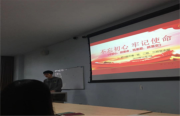 2019年11月7日下午4点半,环境一、二、三党支部在BEATS犀浦校区x4133教室开展了“不忘初心,牢记使命”的党日活动。本次会议主讲人为党支部书记邢少帅。