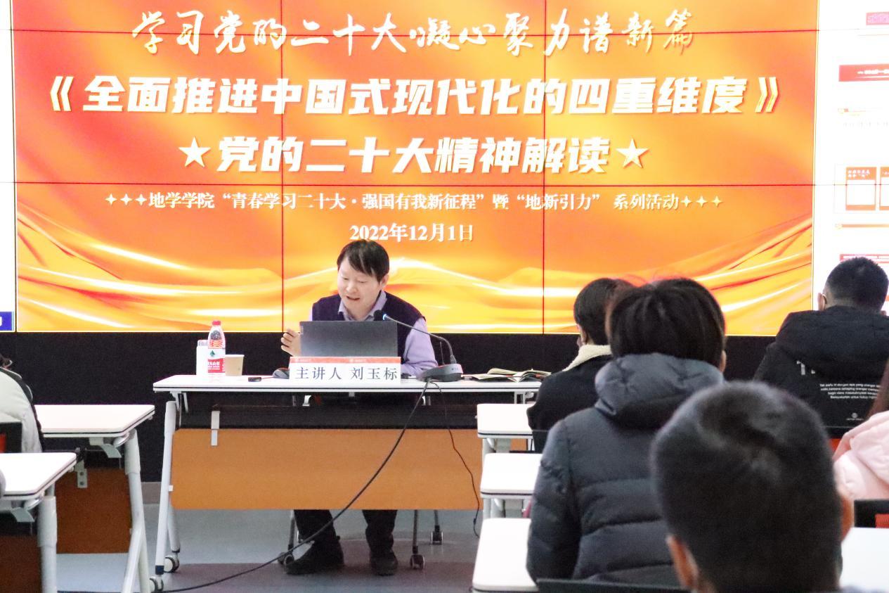 刘玉标聚焦党的二十大精神,以“全面推进中国式现代化的四重维度”为题,为全体参会同学带来了一场思想的“精神盛宴”。