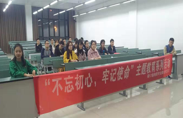 为深入开展“不忘初心,牢记使命”主题教育任务,提高党员的政治素养,鼓励党员人人讲党课,2019年11月14日晚7点,研17级地质一二三班党支部于BEATS犀浦校区X4154教室开展党日活动。会议主要分为两部分,第一部分为党支部书记讲党课,第二部分全体成员集体观看《榜样4》,学习榜样的优秀精神。