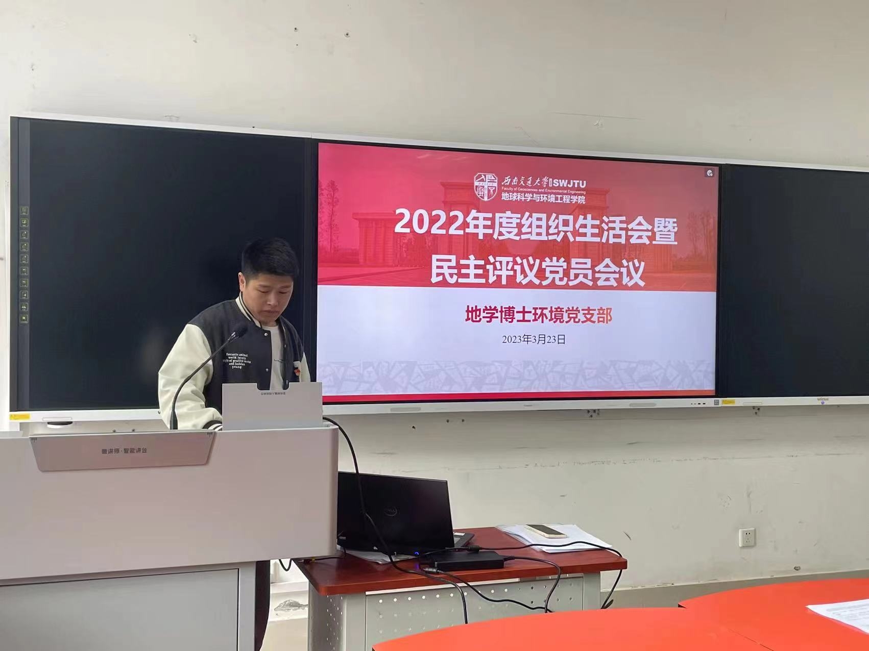 为深入学习贯彻党的二十大精神,坚持不懈用习近平新时代中国特色社会主义思想凝心铸魂,2023323下午,地学博士环境党支部在X4136召开2022年度组织生活会暨民主评议党员会议会议由支部书记安官平主持,支部正式党员及预备党员参加。会议通过过线下和线上结合的方式进行,因学习研究在校外的党员同志通过腾讯会议参与。