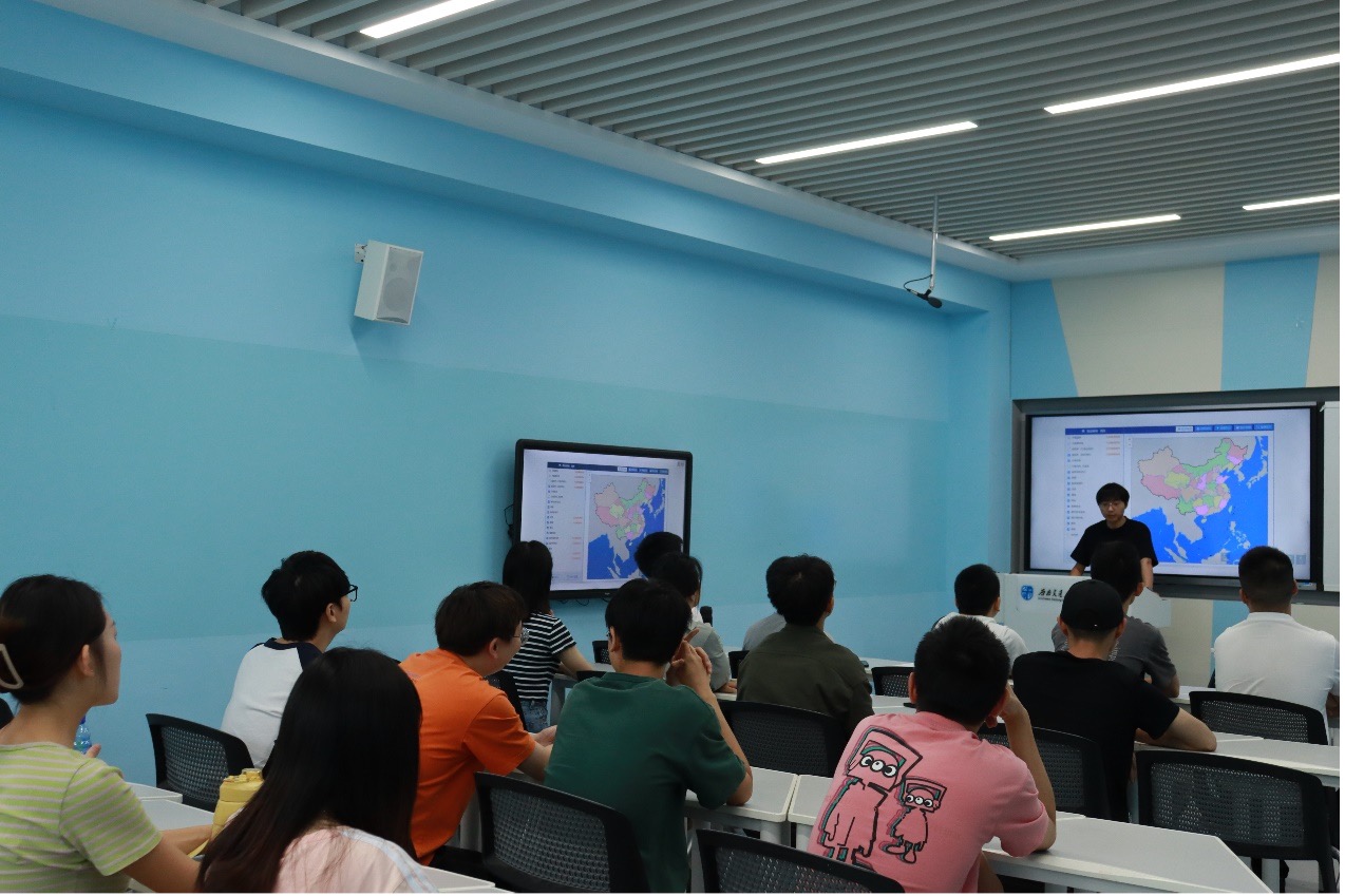 为了让大家更切身实际地体验如何快速下载或制作一幅标准地图,吴遗林同志带领全体成员进行现场演示。通过访问中华人民共和国自然资源部>数据服务>标准地图服务系统,在这里可以进行中国地图、世界地图、专题地图和参考地图等各种类型地图的下载,同时还可以进行自助制图,在所有成员的共同努力下,完成了一幅标准地图的绘制。此外,在制作地图期间,通过对各省的红色英雄事迹、红色历史进行了学习,赓续红色血脉,弘扬伟大建党精神,加强支部成员的爱国主义教育。