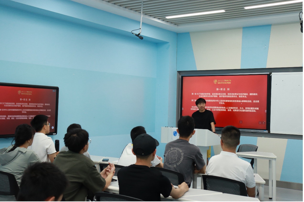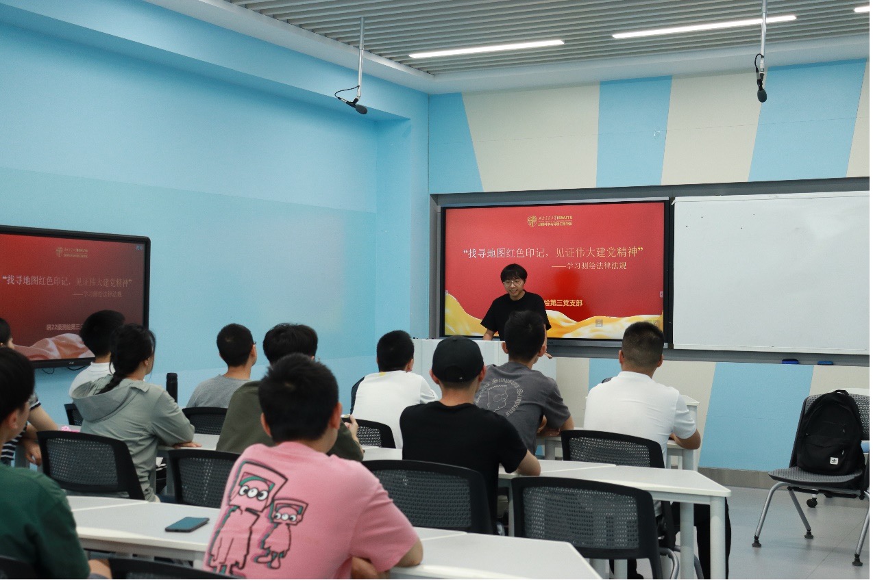 2023614日上午,22级测绘第三党支部J4205教室顺利举行了“找寻地图红色记忆,见证伟大建党精神”主题党日活动,旨在学习《中华人民共和国测绘法》,通过知识竞赛、政策解读、视频学习等形式促使大家掌握测绘相关的法律法规,学习地图上的红色事迹及历史,领悟二十大精神和伟大建党精神,传递正能量,提升党员觉悟和支部凝聚力。支部全体党员及积极分子均参与本次活动,活动由党支部宣传委员吴遗林同志主持。