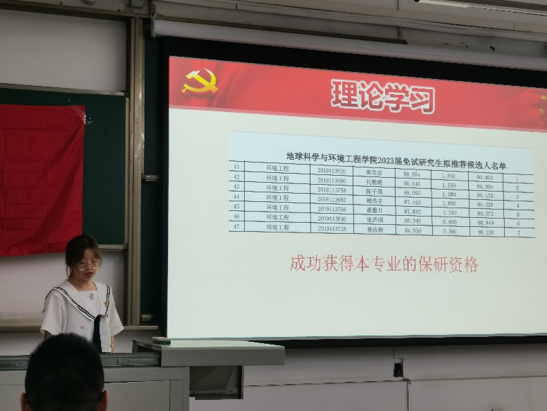 首先,由预备党员依次进行PPT汇报答辩,从思想政治、学习科研、志愿服务、实践活动等方面对自己在预备党员期间进行了总结与反思,并正式向党组织提出转正申请。几位同志都表示自己将在今后的工作、学习、生活上更加严格要求自己,不断加强党性修养,努力做好本职工作,全心全意为人民服务。