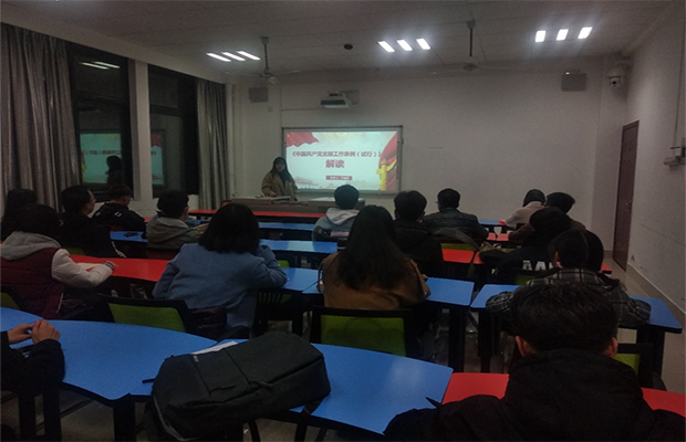 接着,李国欣老师强调了该条例出台的意义。她讲到制定和实施《中国共产党支部工作条例(试行)》,是推动全面从严治党向基层延伸的重要举措,为新时代党支部建设提供了基本遵循,对加强党的组织体系建设,全面提升党支部组织力、强化党支部政治功能,巩固党长期执政的组织基础,意义十分重要。