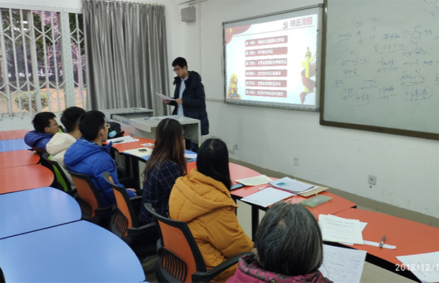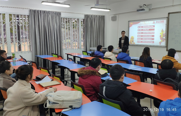 2018年12月19日,研18级测绘一班党支部于BEATS犀浦校区X2109教室顺利开展了预备党员转正支部大会。会议讨论了关于周曈、李奇芪两名同学申请转为正式党员的问题。会议由党支部书记郭永欣主持,组织员冯丽梅老师指导及全体党支部成员和9位群众出席了此次会议。