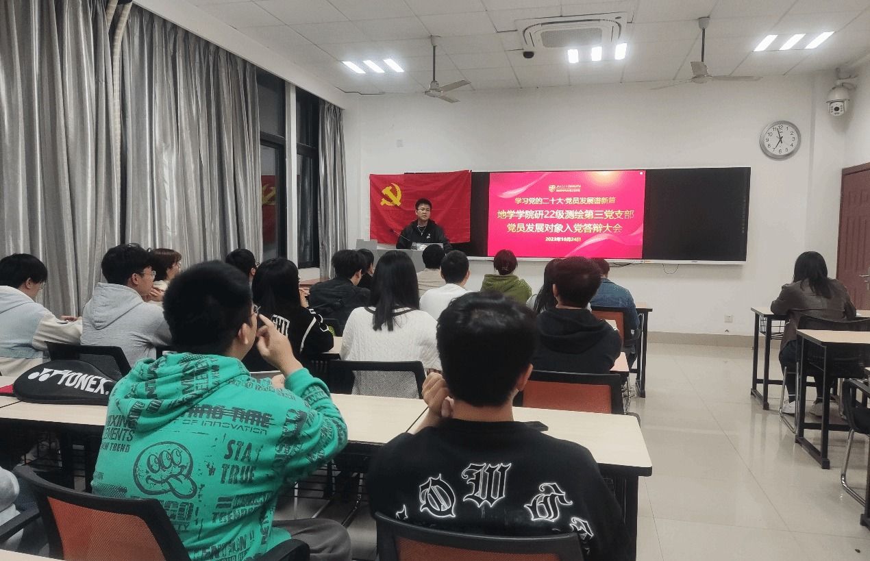 2023年10月24日19点整,BEATS研22级测绘第三党支部在X4129教室顺利召开发展对象入党答辩会,会议的主题是从吴桐同志、李炎秋同志、陈星宇同志、黄涛同志、何轲同志这五位入党积极分子中选取一位作为2023-02期发展对象。本次会议16名党员(含1名预备党员)和所有入党积极分子均参加,此外,还特别邀请辅导员李林遥老师作为政治理论考核员,考察各位候选人的政治理论学习情况。会议由党支部书记刘翔同志主持。