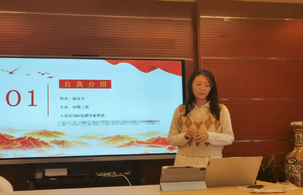 首先,由党支部书记介绍本次答辩会议的目的、议程以及各位候选人的基本情况,然后,三位候选人所在的21级本科环境第三团支部的团支部书记武佳丽同志介绍了候选人在支部的基本表现;