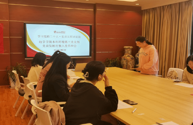 为做好2023年发展党员工作,切实提高党员发展质量,2023年10月23日17:30,BEATS本科环境第三党支部在X4531召开2023-02期发展对象答辩大会。本次大会由本科环境第三党支部书记孙启轩同志主持,本科环境第三党支部全体党员和指导老师杨冰倩老师参与。