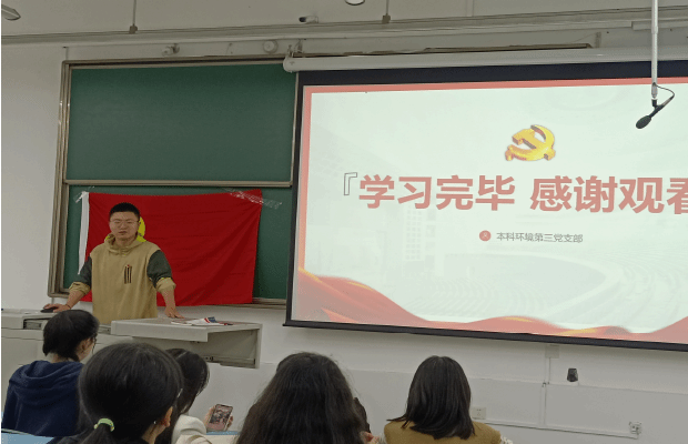 为深入学习贯彻习近平新时代中国特色社会主义思想,学习贯彻习近平总书记有关主题教育最新重要讲话精神,以及深入学习《中国共产党党员教育管理工作条例》,本科环境第三党支部于2023年10月26日下午4点在X2215开展了“学习习近平总书记近期重要指示精神和党员教育管理主题党日活动”主题党日活动。本次党日活动由党支部书记孙启轩主持,支部内全体党员参加。