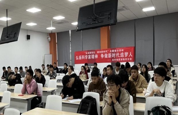 随后,支部成员共同观看了一位地学领域内的杰出科学家、感恩中国2017年度人物——黄大年的生平事迹短片。认识了这样一位“透支自己,也要让人生发光”的地质人。