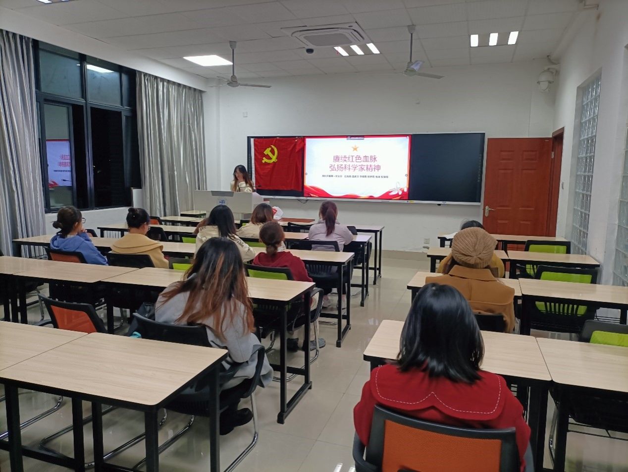此次主题党日活动由雷茗羽同志担任主持人,轩梦雨同志担任分享人。此次活动从“胸怀祖国、服务人民的爱国精神”、“勇攀高峰、敢为人先的创新精神”、“追求真理、严谨治学的求实精神”、“淡泊名利、潜心研究的奉献精神”、“集智攻关、团结协作的协同精神”、“甘为人梯、奖掖后学的育人精神”这六个部分,以科学家的实例来详细阐述科学家精神的具体内涵。
