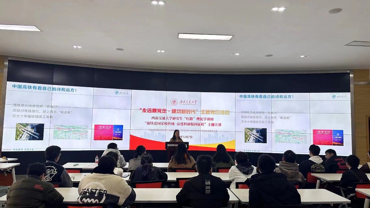 接着,郑雨虹同志分享了BEATS的“竢实扬华、自强不息精神“的起源、传承以及跨时代的体现。她用孙鸿哲先生用一面飘扬的红旗,给予冀东大地一寸希望、茅以升修桥复炸桥几次出山肩挑重担、陈能宽先生隐姓埋名为国造重器,翟婉明先生举毕生之力达交通天下之志的故事激励着在场的每一位党员,将交大精神在新时代绽放出绚丽之光。激发着广大党员同志积极投身到学习和科研中,秉承这种精神,在建设美好未来的征程上不断前行。