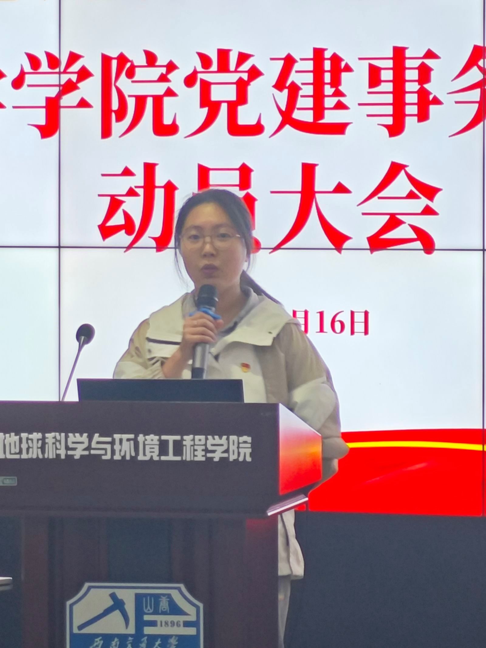 首先周妍利为大家介绍了本次大会的主要流程及参与会议的老师与干部。随后,党建事务中心胡佳慧老师致辞。胡佳慧老师亲切地问候在场的全体成员,对各部门的工作进行评价并感谢大家上学期的努力工作。她还列举了本学期的主要工作,包括毕业生党组织关系转接和公司变更导致管理办法需要做出更改等大型事务性工作,借用“一年之计在于春”来表示对本学期工作的期待。