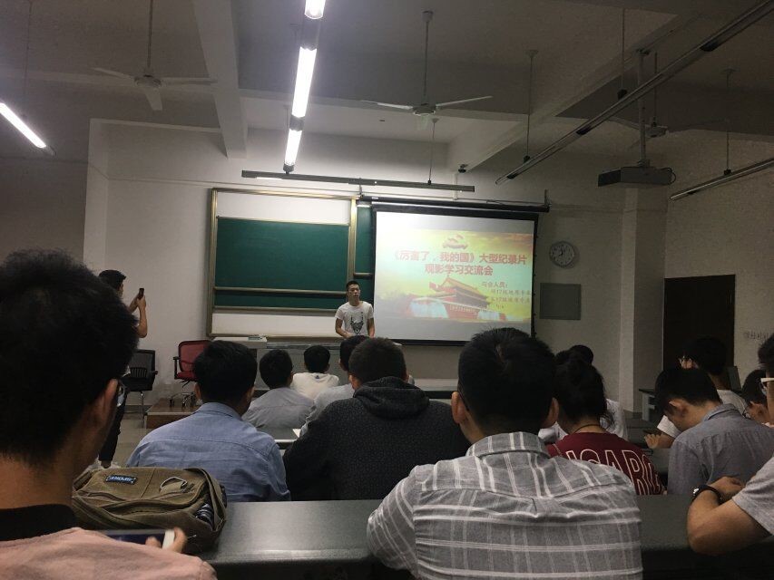 58日晚上,研17级地质三班党支部联合研17级地质一、二党支部全体党员、积极分子以及本17级地质专业全体同学在X9239教室开展了观看电影纪录片《厉害了,我的国》的活动。活动由地质三班党支部书记袁彬主持。