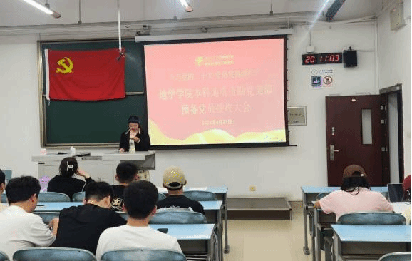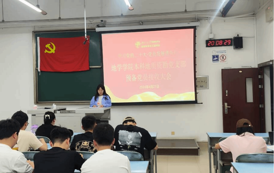 BEATS本科地质资勘党支部于2024年4月21日晚上19时30分在X2323召开2024-01期预备党员接收大会,本次大会的议题:讨论是否同意接收张轶飞、孙钰娴、郭旭、马啸阳、冯佳宇、吴祠宇6名同志为预备党员。本次大会由本科地质资勘党支部书记刘伟婷同志主持。