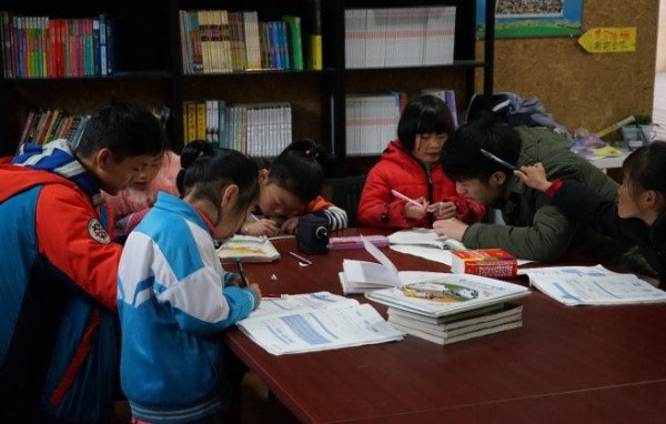 上午的时光转瞬即逝,很快便到了下午。下午的安排是志愿者分年级给孩子进行文化课程的辅导。每位志愿者都拿出了自己之前准备好的教学资料,在黑板上细致的讲解着每一个知识点。孩子们也积极与这些“小老师们”进行互动。
