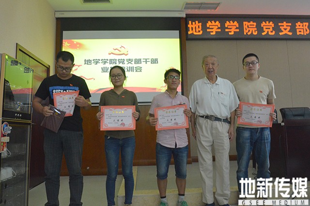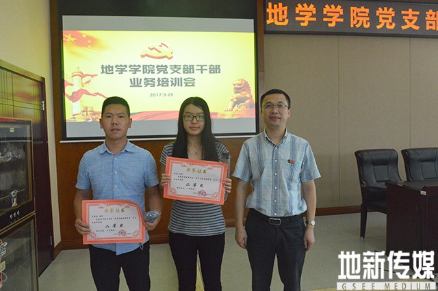 最后,王齐荣、傅尤刚、刘冠军分别为在“我身边的合格党员”征文活动获奖的党员同志颁奖并合影留念。