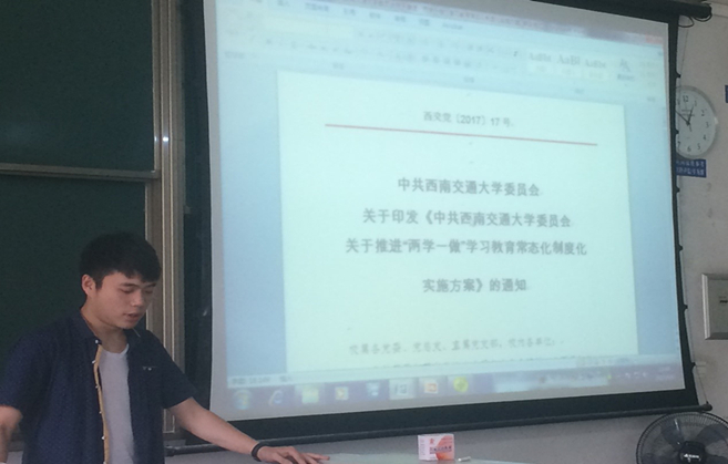 党支部书记罗枫同志指出,要从讲政治的高度充分认识推进“两学一做”学习教育常态化制度化的重大意义,明确目标任务和基本要求,扎实推进“两学一做”学习教育常态化制度化工作。他要求,一是在真“学”实“做”上实现常态化制度化。进一步明确学习内容,严格学习要求,健全学习制度,创新学习手段,引导党员按照“四讲四有”标准,真正做到政治合格、执行纪律合格、品德合格、发挥作用合格。二是在发挥党支部主体作用上实现常态化制度化。通过严格落实“三会一课”制度、开展党员活动日活动、加强党支部建设,使党支部强起来、活起来。三是在查找解决问题上实现常态化制度化。把党的组织生活作为查找和解决问题的重要途径,帮助党员自觉认识问题、自我改进提高。