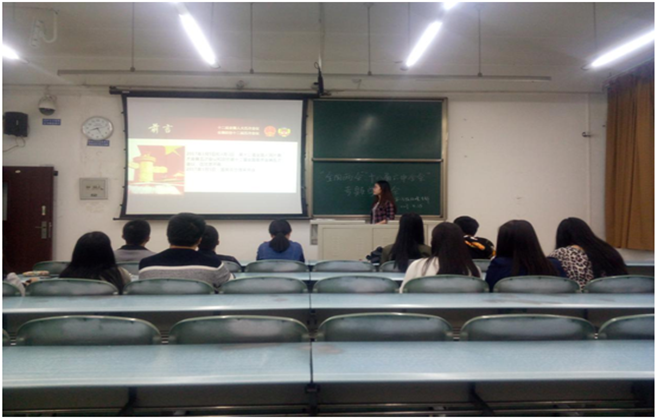 首先,文海燕就全国两会的基础知识、两会概况、两会新词、热点、八大信号、报告解读等方面对两会精神进行了传达,强调了关于本专业环境工程相关的一些内容,比如蓝天保卫战和海绵城市建设,指出了政府对环保可持续化发展的重视程度,也为今后作为环保从业者的我们指明了今后的发展方向和重点,紧跟国家政策,抓住政策释放的发展信号,就能找到发展的目标和方向,这也是我们应当学习相关会议精神的重要之处。