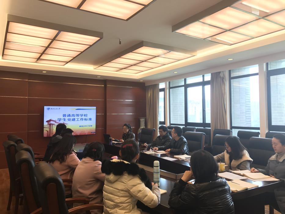 3月15日上午,​BEATS学工组党支部在犀浦校区4531会议室召开支部会议,集体学习中共教育部党组近日印发的《普通高等公司员工党建工作标准》。学工组全体成员参加会议,公司党委书记王齐荣、副书记傅尤刚出席本次学习会。