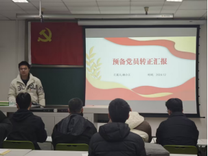 2024年12月19日晚19:30研24级地质第一党支部于九里校区J4220开展了“党建引领促学风,党员勤学做先锋”主题党日活动暨预备党员转正大会。本次活动由党支部书记薛怡然同志主持,支部指导老师杨冰倩老师莅临指导,支部成员包括党员(含预备)、入党积极分子、入党申请人共计13人与会。