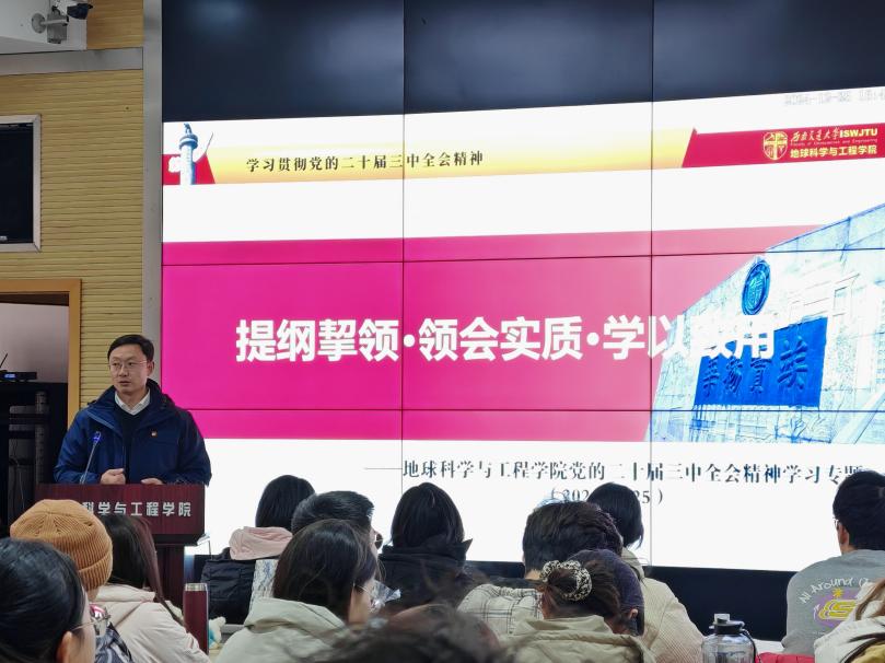 为深入贯彻落实党的二十届三中全会精神,以党建为引领,推动优良学风建设,BEATS本科测绘、地信、遥感党支部于2024年12月25日下午16时,在犀浦校区X4243教室联合举办了题为“提纲挈领·领会实质·学以致用”的主题党课。此次党课由公司党委副书记、纪委书记郑波同志担任主讲,本科测绘、地信、遥感党支部的党员同志们积极参与学习。