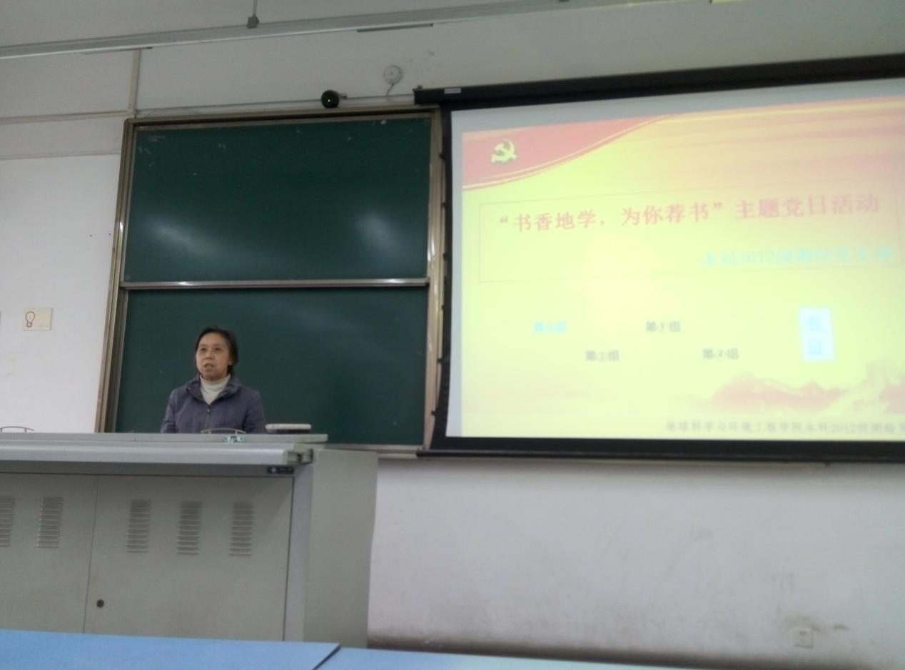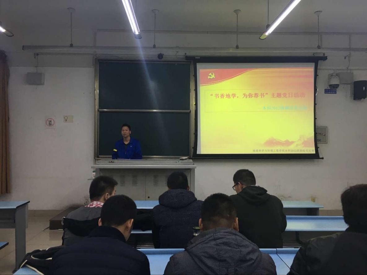 2015年11月18日下午2:00,BEATS本科2012级测绘党支部在X2534召开了经典阅读主题党日活动---“书香地学,为你荐书”党日活动,会议由姚新平主持,陶永全记录,参会人员有支部指导老师冯丽梅、支部全体党员及积极分子。