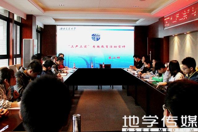 11月2日上午9:50,由本科12级测绘、环境、地质和13级第二党支部共六个支部一起组织开展的“三严三实”与“纪律处分条例”主题党日活动在犀浦校区X4520第一会议室召开。主持人由环境工程专业党支部书记王焱学长担任,他们邀请了校机关党委书记苏小桦老师为在座的党员及预备党员主讲,主要嘉宾有公司党建组织员冯丽梅老师。