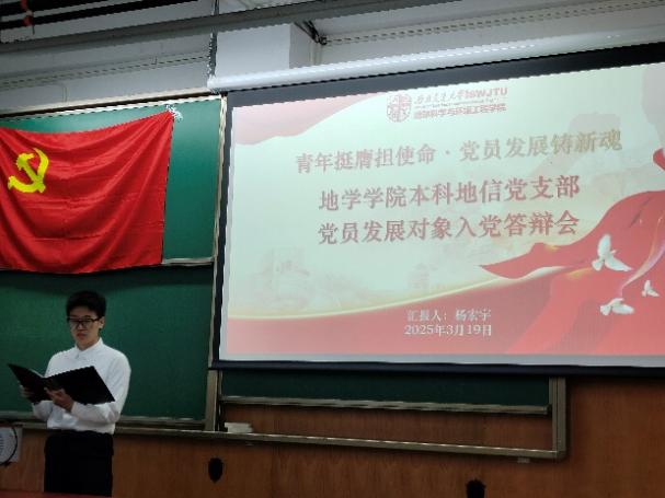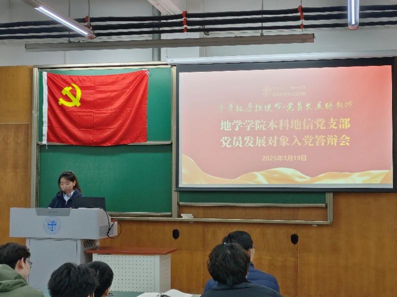 为做好2025年发展党员工作,切实提高党员发展质量,本科地信党支部于2025年3月19日19:30在犀浦校区X4152开展发展对象答辩大会,大会由党支部书记候王悦同志主持,公司党委副书记郑波书记出席并指导大会。