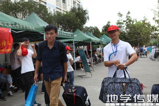 10:00左右,地学迎新点迎来了一个小高峰,但现场工作依然能够保持井然有序。正在登记注册的新生,在学长学姐的引导下顺利完成登记注册,缴费等一系列繁琐的工作,而在后面排队的同学则可以在休息区进行休息,负责迎新的同学还非常人性化的为新同学及其家长送上纯净水解渴。