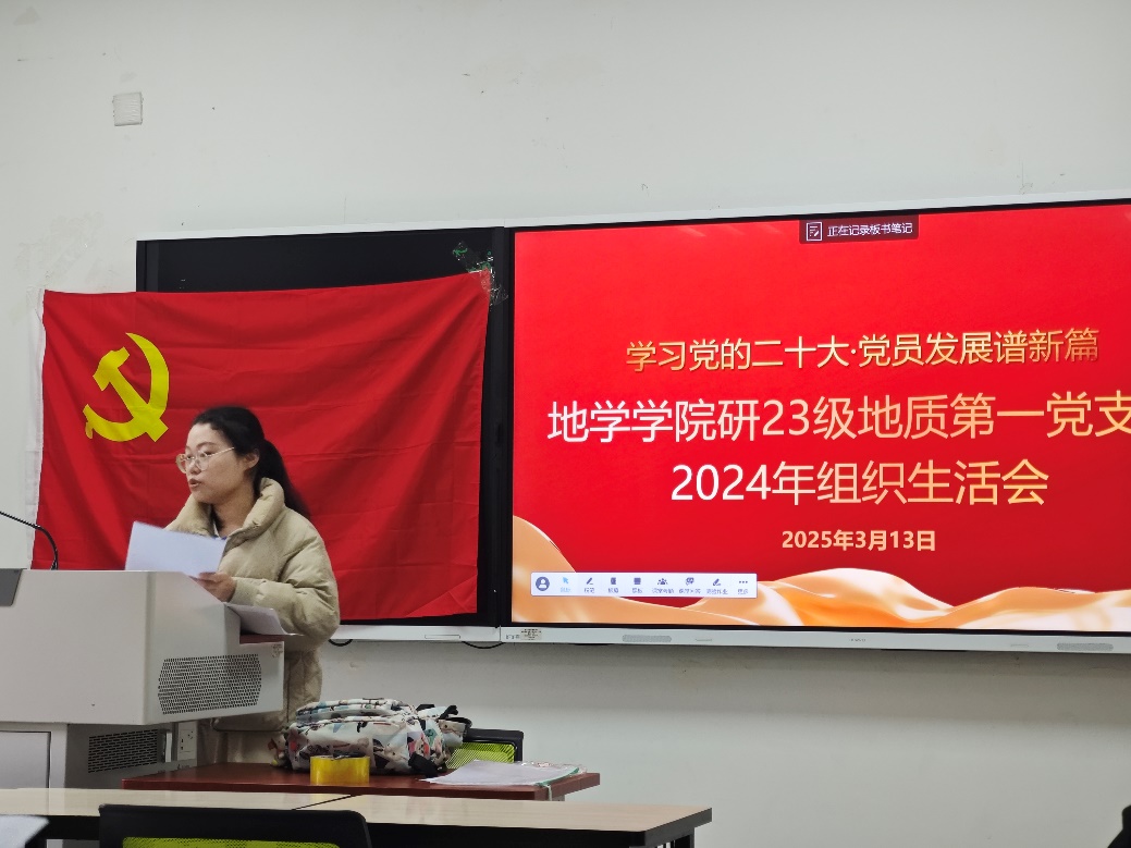 随后,支部书记王睿同志围绕支部在2024年度开展的工作内容以及支部成员的批评与自我批评内容进行总结。过去一年,在上级党委的坚强领导下,研23级地质第一党支部紧紧围绕公司和公司的中心工作,认真履行职责,扎实推进各项工作。研23级地质第一党支部积极开展主题党日活动,加强党员教育管理。但工作中还存在一些不足,如党员教育形式还不够丰富多样,对部分党员的思想动态掌握还不够全面深入等。在今后的工作中,研23级地质第一党支部将进一步加强自身建设,创新工作方法,提高工作质量,更好地发挥党支部的战斗堡垒作用和党员的先锋模范作用。随后,王睿同志总结了支部成员自身存在的问题主要在学习不够积极主动,政治理论学习不够深入和志愿服务活动参与度不高几个方面,支委会将会在之后的学习生活中围绕以上几个方面开展引导式教育类活动和服务实践类活动,帮助支部同志改进不足。大家在发言中,本着对党负责、对同志负责、对自己负责的态度,实事求是地进行自我剖析,诚恳地提出批评意见,共同营造了团结、和谐、奋进的良好氛围。