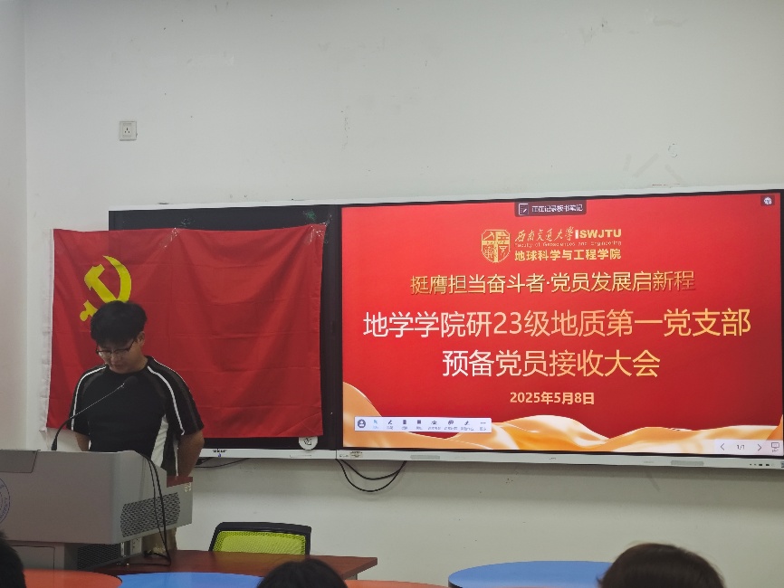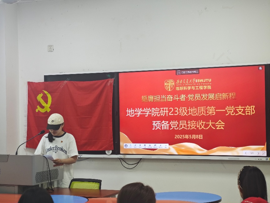 为做好2025年发展党员工作,切实提高党员发展质量。研23级地质第一党支部于2025年5月8日10:00在X4137召开2025-01期预备党员接收大会,本次会议由党支部书记王睿同志主持,公司党委专职组织员李晓宇老师与会参与指导,支部成员总计15人参会。