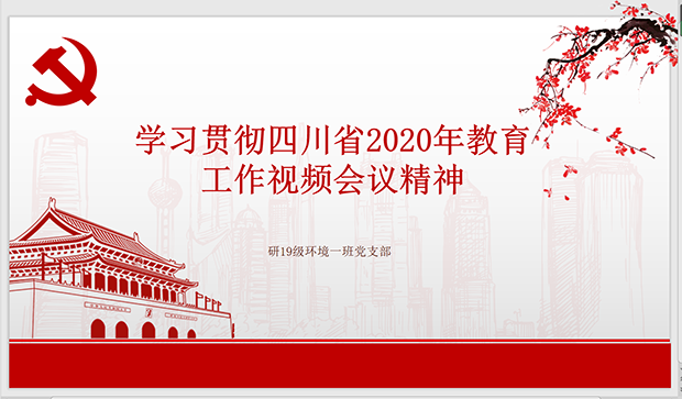 根据公司党委“抓好疫情防控不放松,抓好各项重要工作不懈怠”的要求,研2019级环境一班党支部落实公司工作安排,积极开展学习会议精神。于4月1日通过腾讯会议平台开展了线上学习活动对四川省2020教育工作会议精神进行了认真学习。学习过程主要围绕李光华同志和李江同志在会议上的讲话和省委常委甘霖同志和副省长杨兴平同志批示精神展开。会议由支部书记赵聪同志主持。